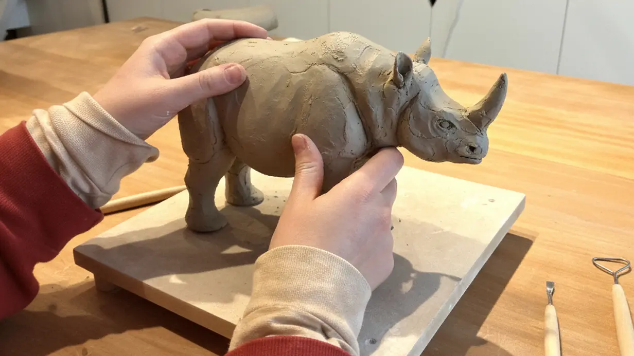 La matinée est consacrée à l’apprentissage des gestes essentiels du modelage. Vous explorerez l’anatomie animale afin de construire des volumes justes et équilibrés. L’observation des proportions vous permettra de poser une structure solide et d’ébaucher votre sculpture de manière cohérente et expressive.